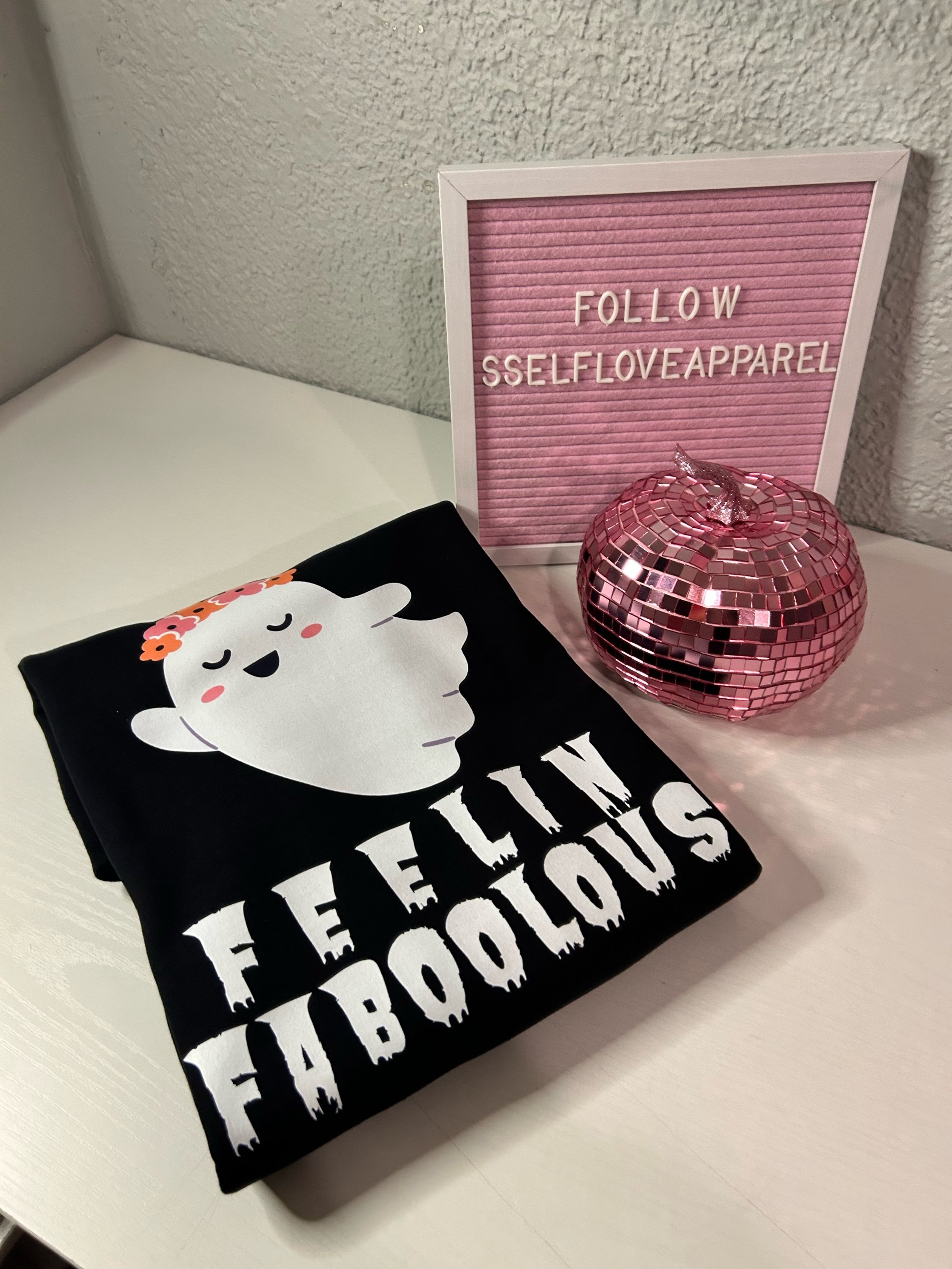 Introducing the "Feeling Faboooolous" Crewneck, your ultimate Halloween essential from our self-love clothing brand! This cozy black crewneck sweatshirt features an adorable ghost design that's sure to make you feel as fabulous as you look. Perfect for embracing the spooky season with a touch of self-love & confidence, this piece is as comfortable as it is stylish.